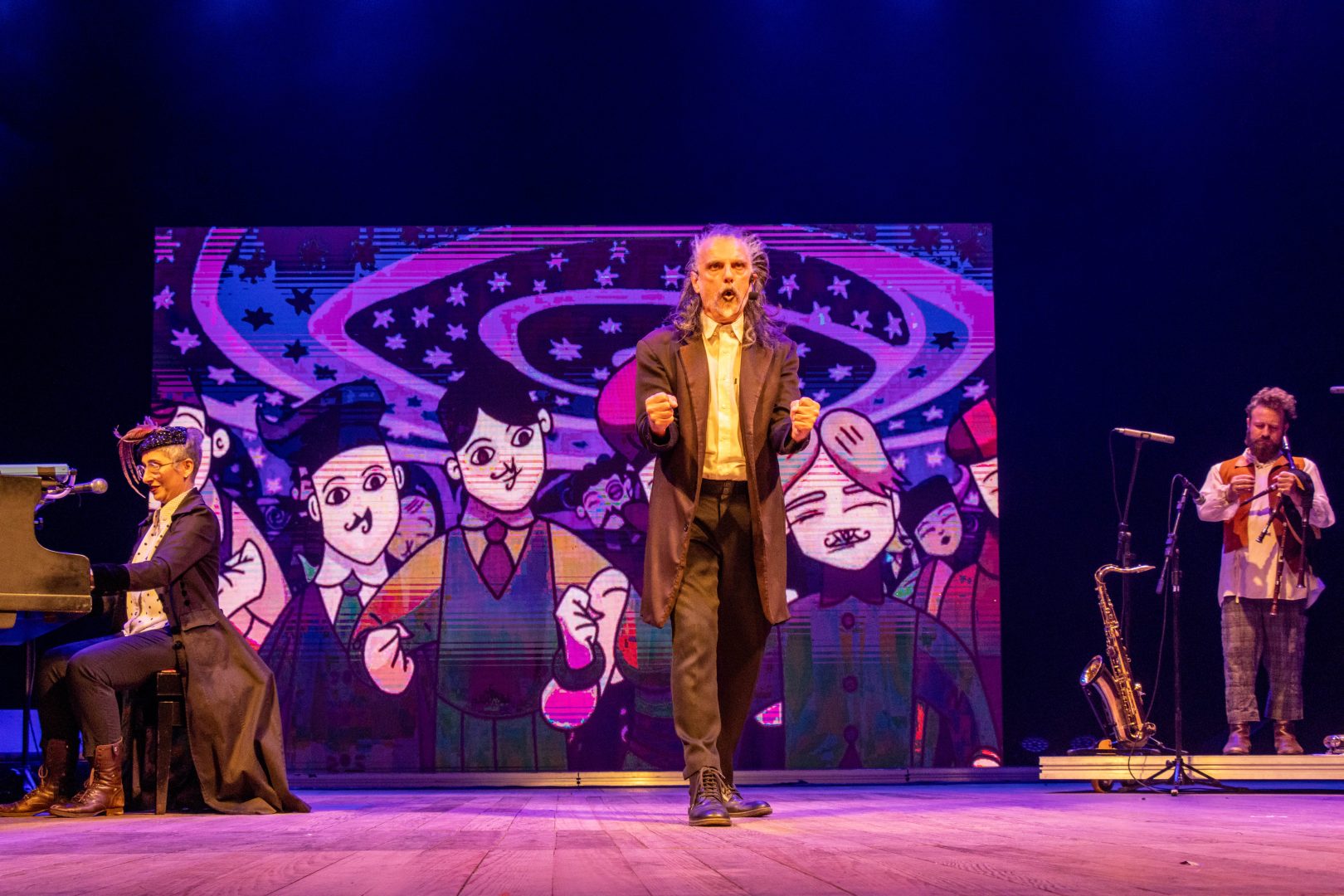 Protagonizado por Hique Gomez (Kraunus Sang) e Simone Rasslan (Nabiha), o show traz humor refinado, narrativa envolvente e músicas icônicas como Copérnico, que há quatro décadas conquista plateias.