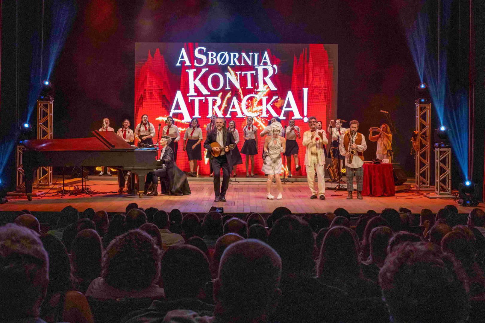 No show, Kraunus (Hique Gomez) e Nabiha (Simone Rasslan) estão acompanhados de sbørnianos especiais: o Professor Ubaldo Kanflutz (Cláudio Levitan), reitor das Universidades de Ciências Fictícias da Sbørnia, MenThales (Tales Melati), o tocador de gaita-foles e hipnotizador das montanhas da Kashkadúnia, Pierrot Lunaire (Gabriella Castro) a grande sapateadora do Ballet Hiperbølico da Sbørnia e o “Stela Maritmus Sborniani”, as Estrelas do Mar Sbørniano, uma seleção de 12 vozes do Jungst Korhal Sbøniani.