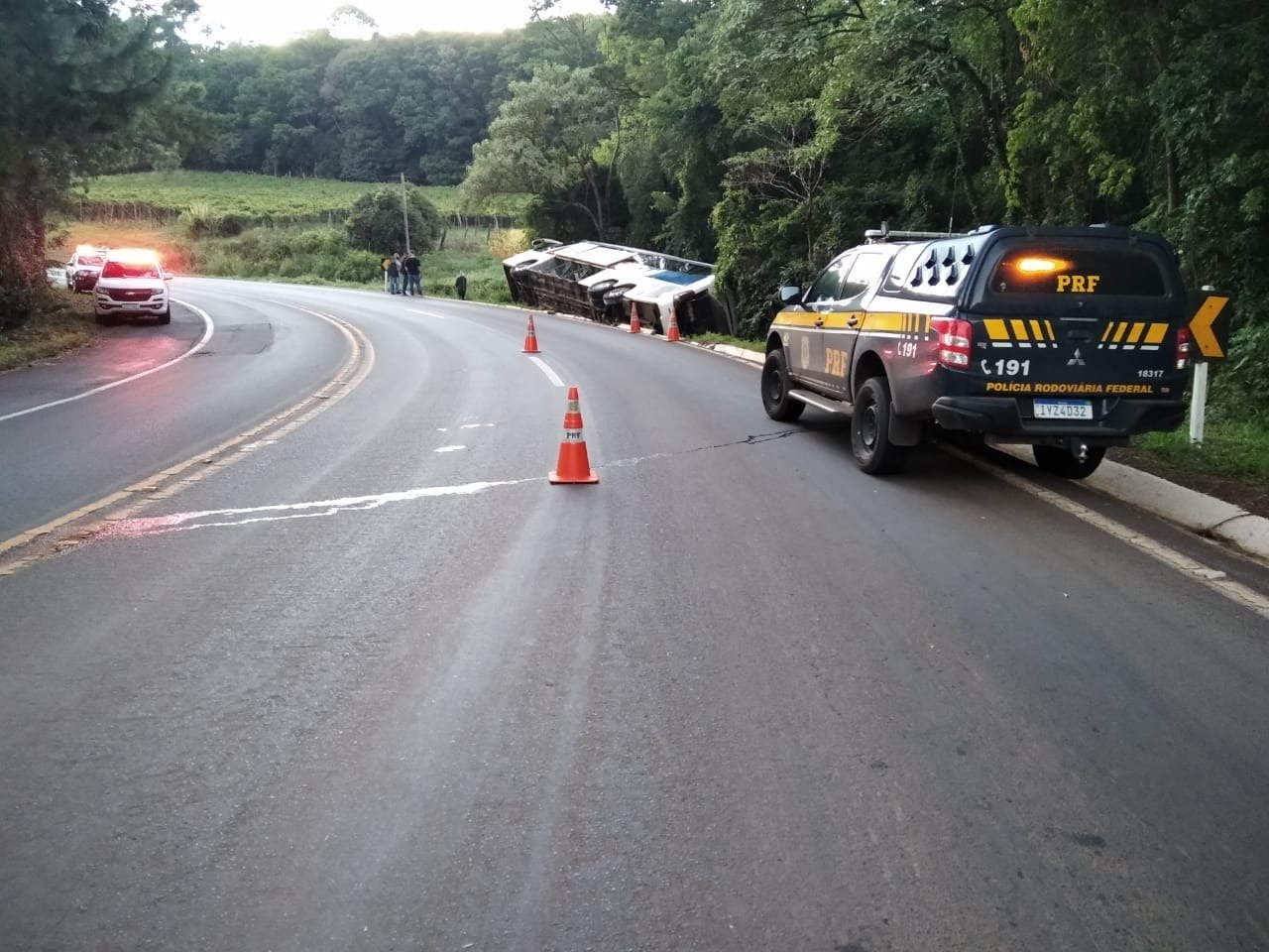 Segundo informações divulgadas pela PRF (Polícia Rodoviária Federal), o veículo da empresa Unesul saiu da pista e depois tombou às margens da rodovia.