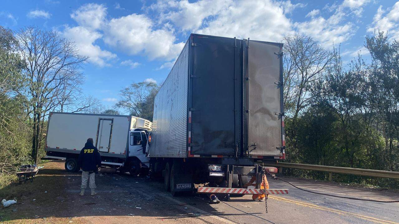 Segundo a PRF (Polícia Rodoviária Federal), os dois veículos – um Ford Cargo emplacado em Rodeio Bonito e um Volvo de Passo Fundo – colidiram frontalmente por volta das 6h.