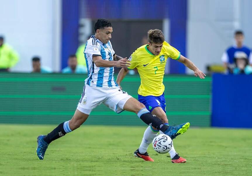 Já a Argentina foi dominante, teve maior posse (60%), buscou muitos cruzamentos na área brasileira e criou a melhor chance com uma falta de Almada na trave.