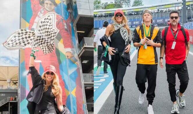 Adriane Galisteu posou em frente à pintura de Ayrton Senna, no Autódromo de Interlagos, ao assistir à corrida sprint do Grande Prêmio de São Paulo, no último sábado (8). A apresentadora, que namorava com o piloto de Formula 1 quando ele morreu, recriou sua icônica pose ao comparecer ao evento com sua família.