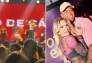 A top, de 42 anos, que está viajando com os filhos e amigos, foi clicada fazendo selfies no mar enquanto exibia seu corpo usando biquíni vermelho no fim de semana.