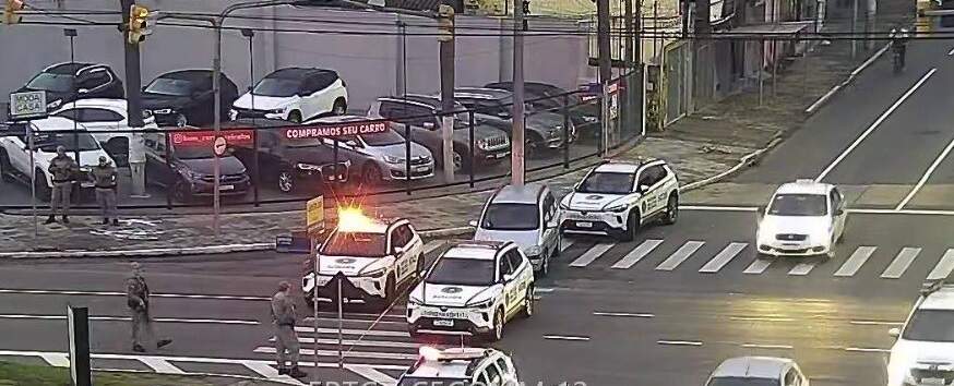 Em razão de uma ameaça de bomba, o trânsito na avenida Ipiranga, em Porto Alegre, foi bloqueado na altura do cruzamento com a avenida Silva Só, no sentido Centro-bairro, na manhã deste sábado (21).