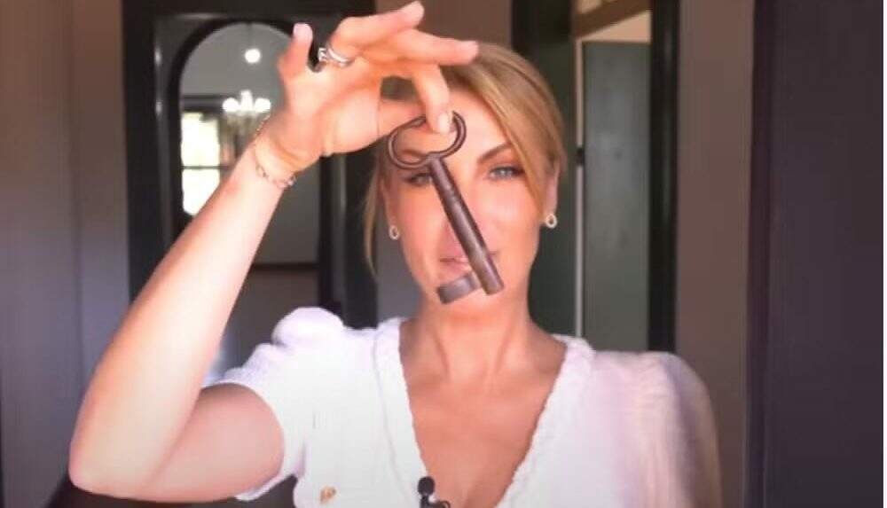 Desde a entrada, é possível notar a imponência da construção. Ana mostrou a chave principal da casa e comentou que, além de grande, é bastante pesada. O casal destacou a originalidade dos elementos, como portas, janelas e pisos, que preservam a história do lugar.
