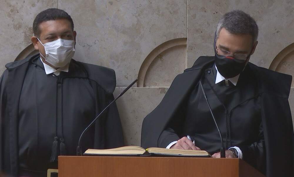 Em cerimônia no plenário do STF, com participação restrita de autoridades e convidados em razão da pandemia de Covid-19, Mendonça leu o compromisso de cumprir os deveres do cargo e a Constituição e foi declarado empossado pelo presidente do Supremo, Luiz Fux.