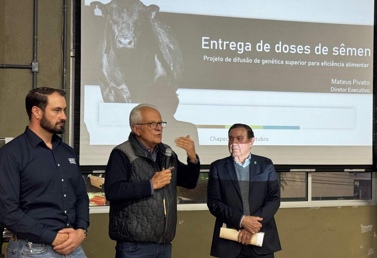 A pecuária de corte de Santa Catarina vive um momento histórico. A Associação Brasileira de Angus e Ultrablack realizou, nesta quinta-feira (9), a entrega de 7,9 mil doses de sêmen de touros Angus de alto desempenho à Assistência Técnica e Gerencial (ATeG) do sistema Faesc/Senar-SC. A ação ocorreu durante a Exposição Nacional de Angus e Ultrablack, na programação da Efapi, em Chapecó (SC), e marca o início de um projeto que prevê a distribuição de 15 mil doses até o fim de outubro.
