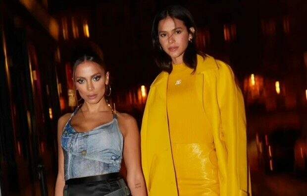 Anitta e Bruna Marquezine se encontraram novamente em Paris, onde acompanham a Semana de Moda. A cantora compartilhou o clique em seu Instagram e ainda fez graça com a diferença de altura entre as duas ao colocar a música Baixinha, de Chininha e L7NNON, como fundo sonoro.