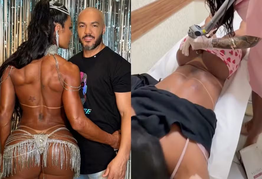 Gracyanne Barbosa, de 42 anos, deu mais um passo simbólico após a repercussão da tatuagem íntima que fez em homenagem a Belo, de 51. A musa fitness compartilhou, nesta terça-feira (10), reels publicado por Bruna Caroline, profissional responsável pelo procedimento de remoção, no qual a ex-BBB aparece deitada na maca enquanto inicia a retirada do nome do ex-marido. Tudo isso ao som de Razão da Minha Vida, música do cantor.