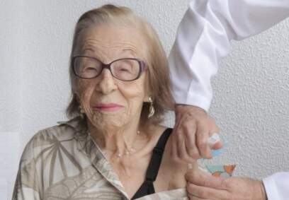 A anciã é mais velha dos 24 moradores do estabelecimento, todos com idade superior a 80 anos. E estava na maior animação ao ser conduzida até a sala-de-estar onde a equipe volante da Secretaria Municipal da Saúde (SMS) aplicava as injeções. Durante a aplicação da dose (a quinta em dois anos), posou sorridente na poltrona para o fotógrafo da prefeitura.