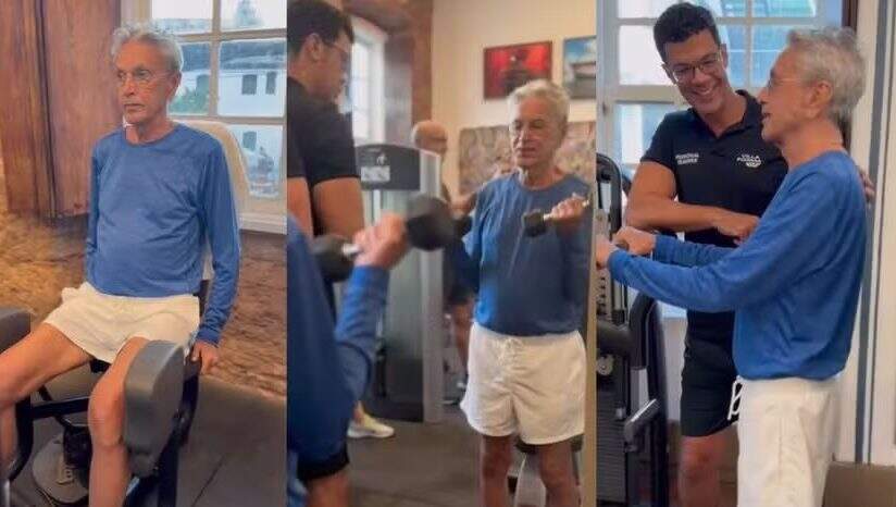 Descanso? Que nada. Caetano Veloso mostrou que está preparadíssimo para a maratona de shows que o aguarda. O cantor está na reta final da turnê ao lado da irmã, Maria Bethânia. Em um vídeo publicado nas redes sociais, o baiano de 82 anos surgiu se exercitando numa academia no Rio Vermelho, em Salvador.