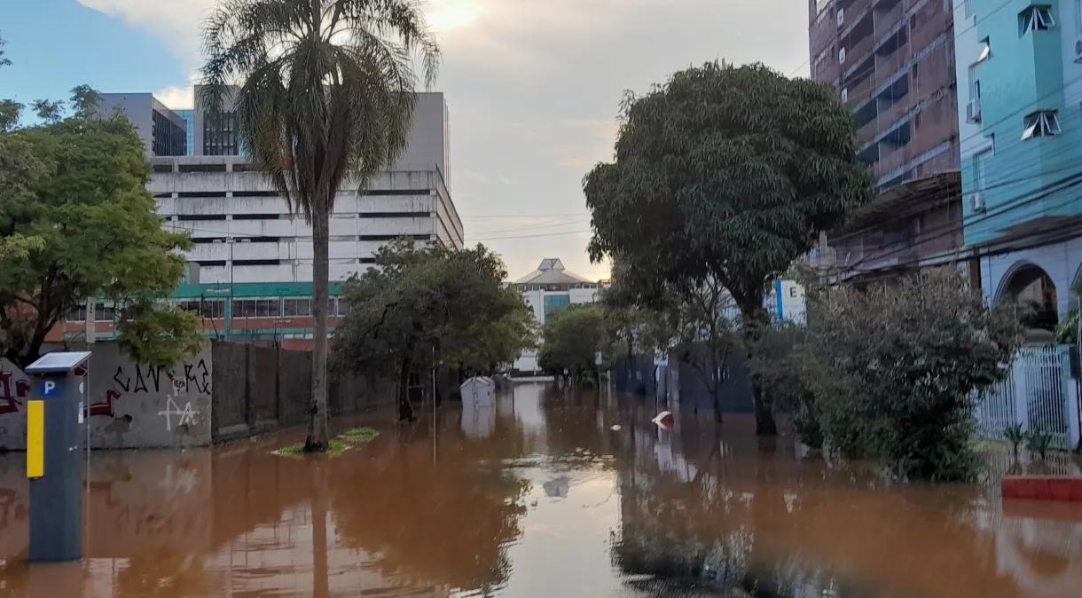 A prefeitura informou que a Ebap (Estação de Bombeamento de Água Pluvial) 12 “está operando com capacidade reduzida, o que está causando acúmulo de água na região do Menino Deus”.