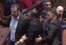 O discurso de Trump foi brevemente interrompido por um protesto de dois parlamentares israelenses de esquerda pedindo o reconhecimento do Estado palestino. Eles foram rapidamente retirados do local por seguranças. O homem gritou e ergueu um papel com a mensagem “reconheçam a Palestina”.