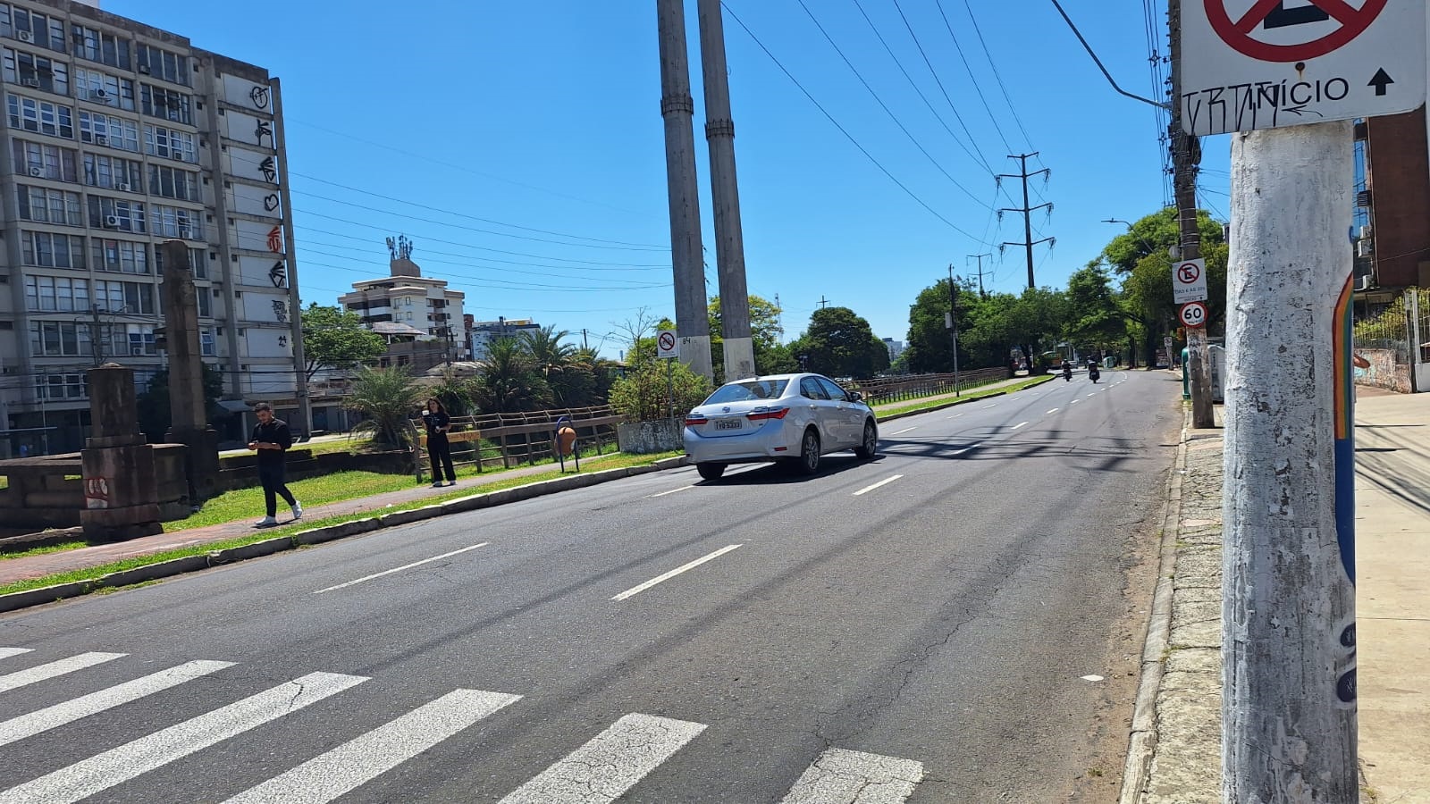 Para evitar o risco de choques elétricos, os agentes de trânsito impediram tanto a passagem de veículos quanto a de pedestres. A EPTC orientou os condutores para os desvios na região.