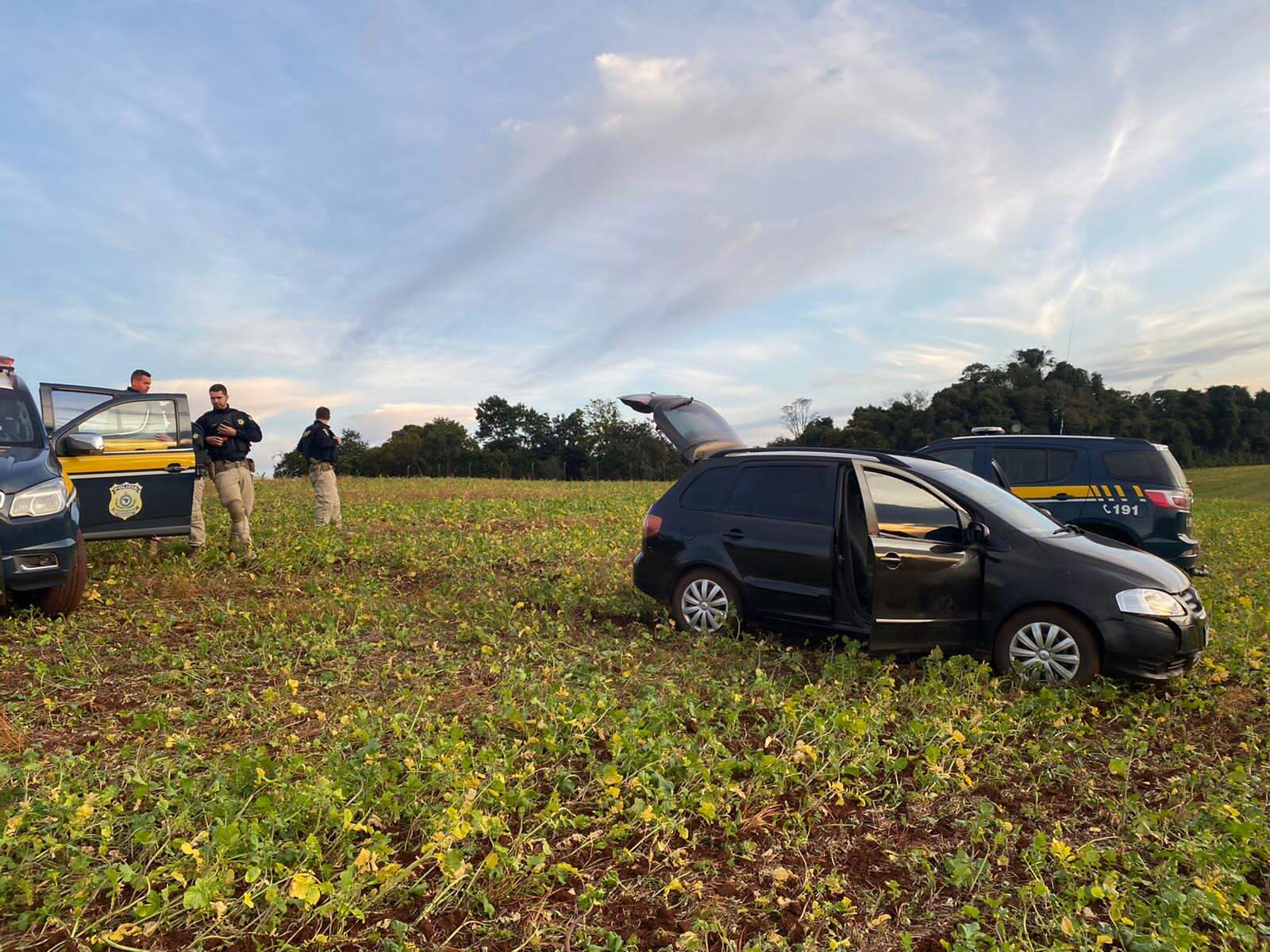 A carga era transportada em um carro com placas de Porto Alegre. O motorista do veículo desobedeceu à ordem de parada e houve perseguição. O carro acabou interceptado em uma lavoura. Ao revistarem o veículo, os policiais encontraram os agrotóxicos contrabandeados divididos em 30 galões.