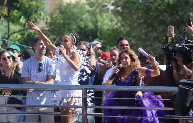 As duas artistas cantaram sucesso “Maimbe Danda”, de Daniela, e “O Mundo Vai”, de Ivete. Os foliões do circuito pularam ao som das duas músicas e aplaudiram a dupla.