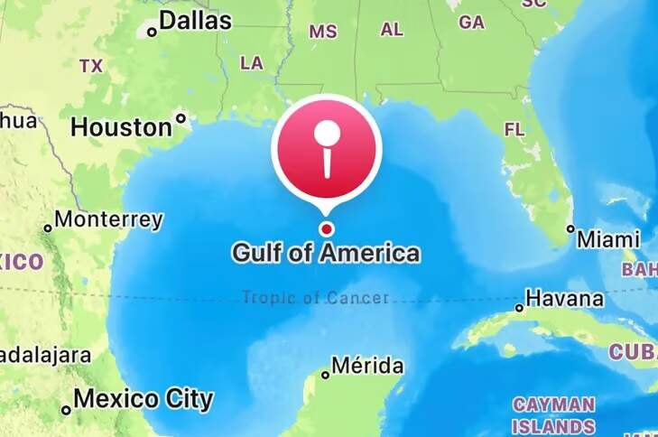 A Apple renomeou o Golfo do México como “Golfo da América” para os usuários norte-americanos do seu aplicativo de mapas, em acordo com um decreto do presidente Donald Trump, segundo a agência France Presse. Agora, pessoas que usarem o aplicativo Apple Maps nos Estados Unidos terão o local identificado como “Golfo da América”. No entanto, aqueles que acessam o serviço do exterior continuarão a vê-lo como Golfo do México.