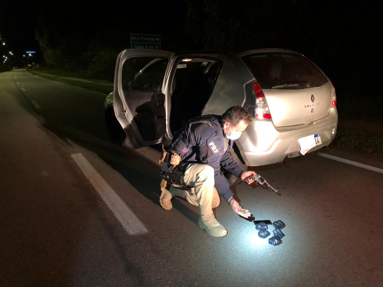Na madrugada deste sábado (12), a Polícia Rodoviária Federal (PRF) prendeu um homem com arma, munições e drogas. Ele viajava como passageiro em um transporte por aplicativo. A abordagem foi na BR-116, em Pelotas, no Sul do Estado.