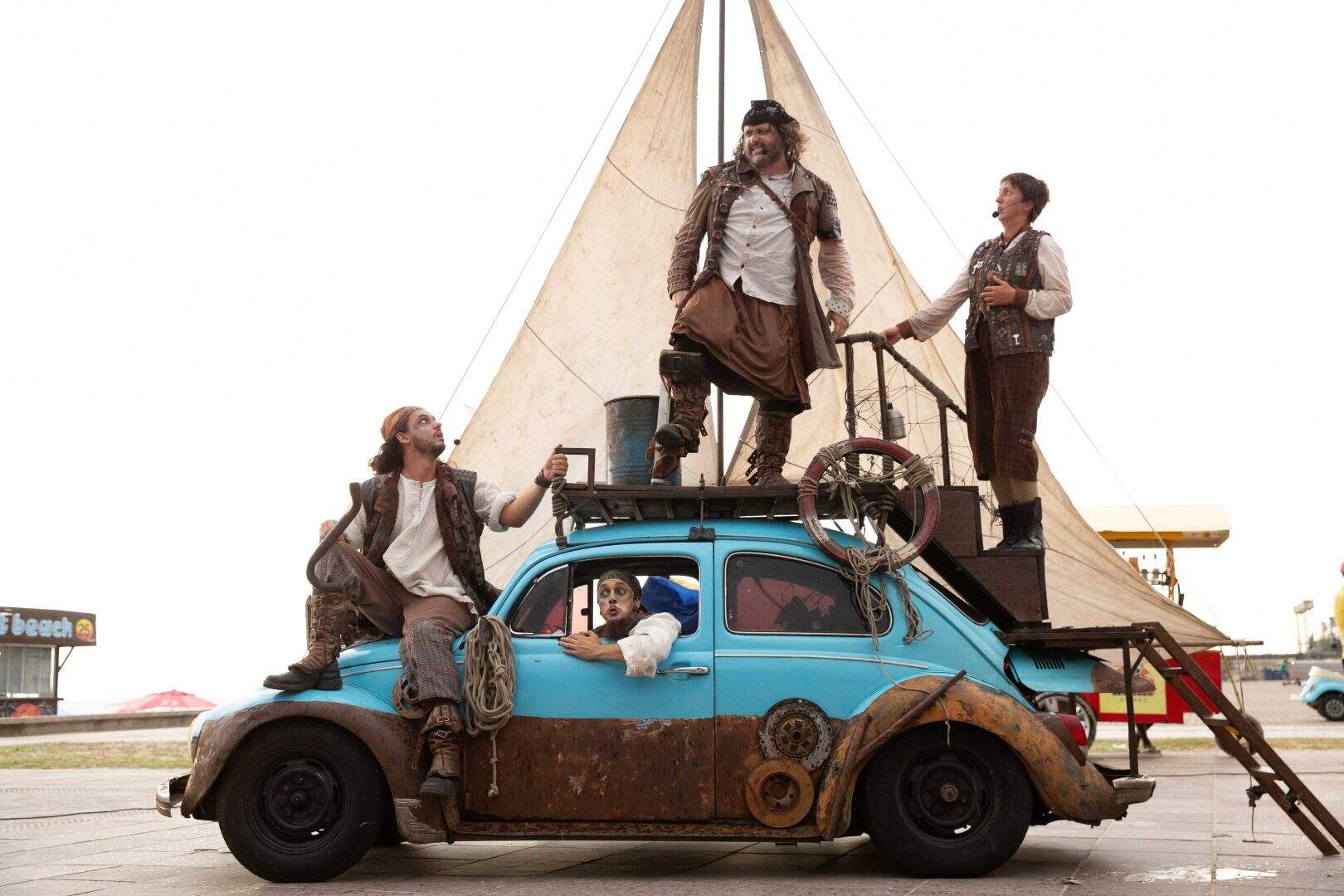 Com uma abordagem criativa e inovadora, o espetáculo utiliza figurinos e adereços que provocam o inusitado, levando o público a uma jornada imaginativa. No enredo, o Fusca, em sua transformação, deixa de ser um simples veículo terrestre e se transforma em um barco à vela, ou mais especificamente, um “fusca à vela”, tripulado por piratas. Essa metamorfose provoca uma experiência visual e emocional que instiga o público a embarcar em uma viagem simbólica com os marujos rumo ao mar, explorando a fantasia e o imaginário coletivo.