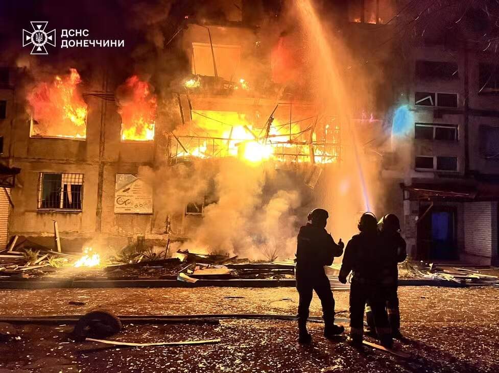 O ministério informou que as forças russas atacaram Dobropillia com mísseis balísticos, múltiplos foguetes e drones, danificando oito prédios de vários andares e 30 carros.