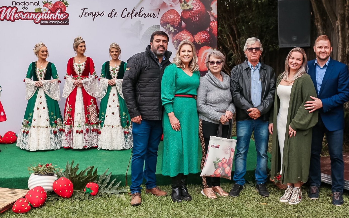 Elas foram recepcionadas junto com as pequenas moranguetes e pelo prefeito de Bom Princípio, Fábio Persch e sua esposa Lilian Juchem. Posteriormente, apresentaram as atrações da festa, que ocorrerá em setembro. Com shows de Wesley Safadão, Jorge & Mateus, Roupa Nova, Alok e muitas outras atividades culturais.