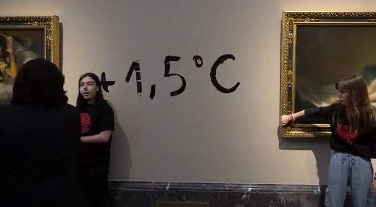 Dois ativistas do grupo espanhol Futuro Vegetal se prenderam às molduras das pinturas “A Maja Nua” e “A Maja Vestida” de Francisco de Goya expostas no Museu Nacional do Prado, em Madri. Eles escreveram a mensagem ‘+1,5º’ na parede entre as obras em alerta “sobre o aumento da temperatura global que causará um clima instável e graves consequências em todo o planeta”. Os dois foram presos e levados sob custódia, segundo a polícia.