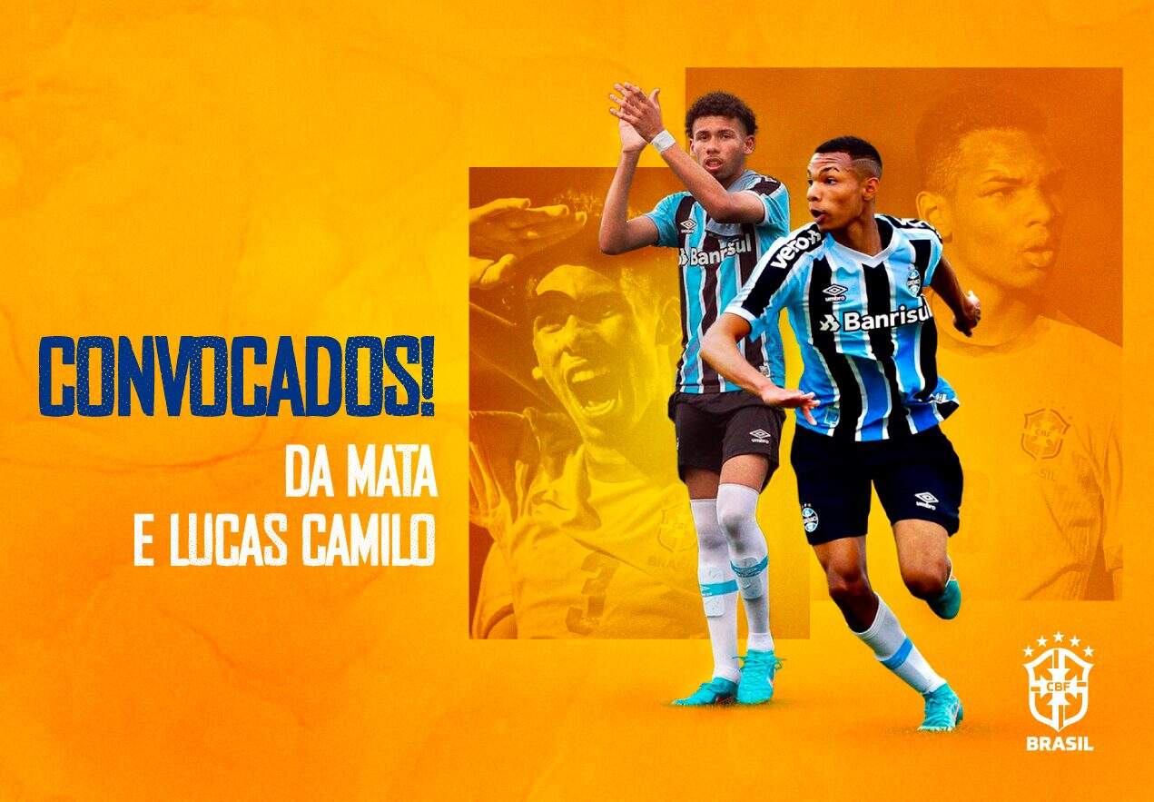 O técnico da Seleção Brasileira Sub-17 Phelipe Leal, divulgou na última terça-feira (14), a lista de atletas convocados para um período de preparações da equipe. Dois jogadores da base gremista estão entre selecionados. O meia Lucas Camilo e o zagueiro Da Mata vão participar das atividades entre os dias 24 de fevereiro e 3 de março.