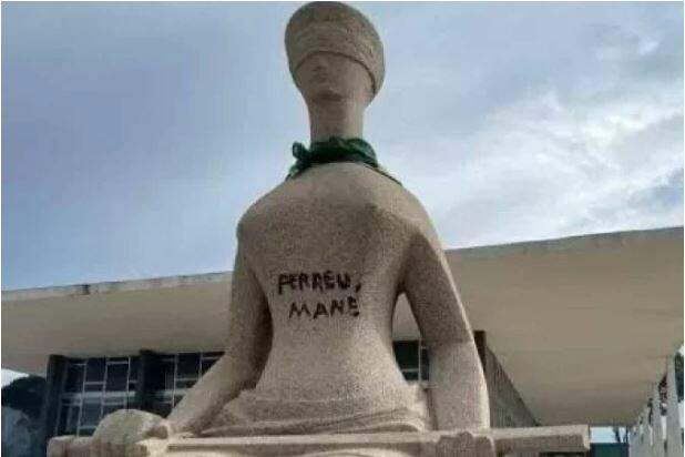 A Polícia Federal prendeu nessa sexta-feira (17) uma mulher acusada de pichar a expressão “perdeu, mané” na estátua da deusa Têmis, fixada em frente ao prédio do Supremo Tribunal Federal (STF). Também foi preso um homem que furtou a bola autografada por Neymar.