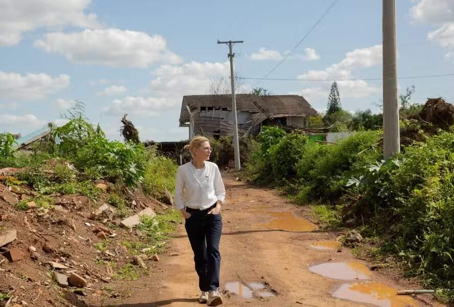 A atriz australiana Cate Blanchett, esteve no Brasil nesta semana entre a segunda (16) e quarta-feira (18) e visitou áreas atingidas pelas enchentes de abril e maio deste ano no Rio Grande do Sul. Ela, que é embaixadora da Boa Vontade do ACNUR (Agência da ONU para Refugiados), se reuniu com refugiados e brasileiros impactados pelas chuvas históricas que acometeram o Estado.