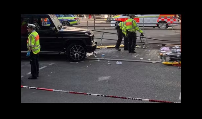 O jornal Bild citou testemunhas que disseram que uma mulher com um carrinho de bebê foi atropelada pelo SUV Mercedes Classe G preto.