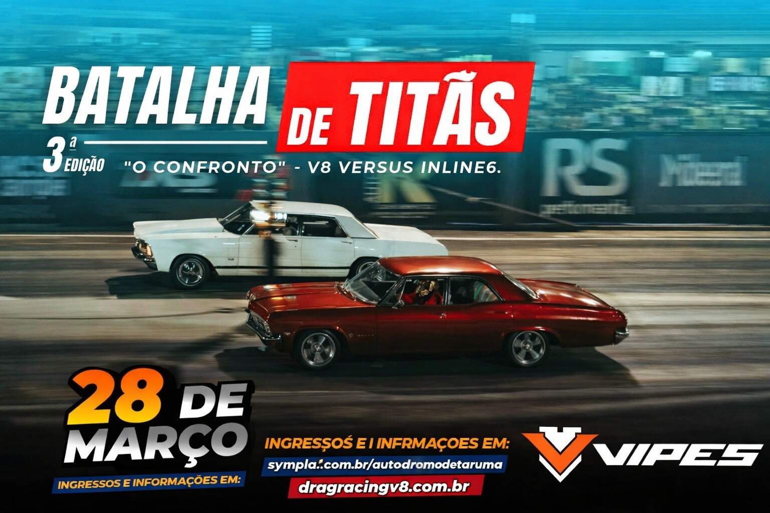 O evento acontece no dia 28 de março de 2026, no Autódromo Internacional de Tarumã, reunindo alguns dos carros mais preparados do RS em um confronto direto entre V8 e 6 cilindros. A atividade já se consolidou como um dos principais encontros de performance da região, atraindo pilotos, preparadores e apaixonados por velocidade para um dia de disputas intensas e muita adrenalina.