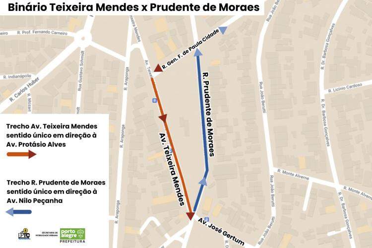A Prudente de Moraes terá sentido único entre a avenida José Gertum e a praça localizada na rua Francisco de Paula Cidade – assim como a Teixeira Mendes, subindo em direção a Protásio Alves. Entre a Francisco de Paula Cidade e a a avenida João Wallig, a Prudente de Moraes continuará com sentido duplo.