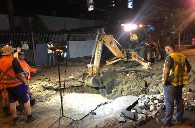 Por volta das 22h, o caminhão carregado com gás foi retirado, e as equipes do Departamento iniciaram o conserto emergencial.