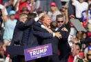 A imagem mostra o que parece ser sangue na orelha de Trump. O Serviço Secreto dos EUA informa que ele está seguro e que medidas de proteção foram implementadas ao seu redor.