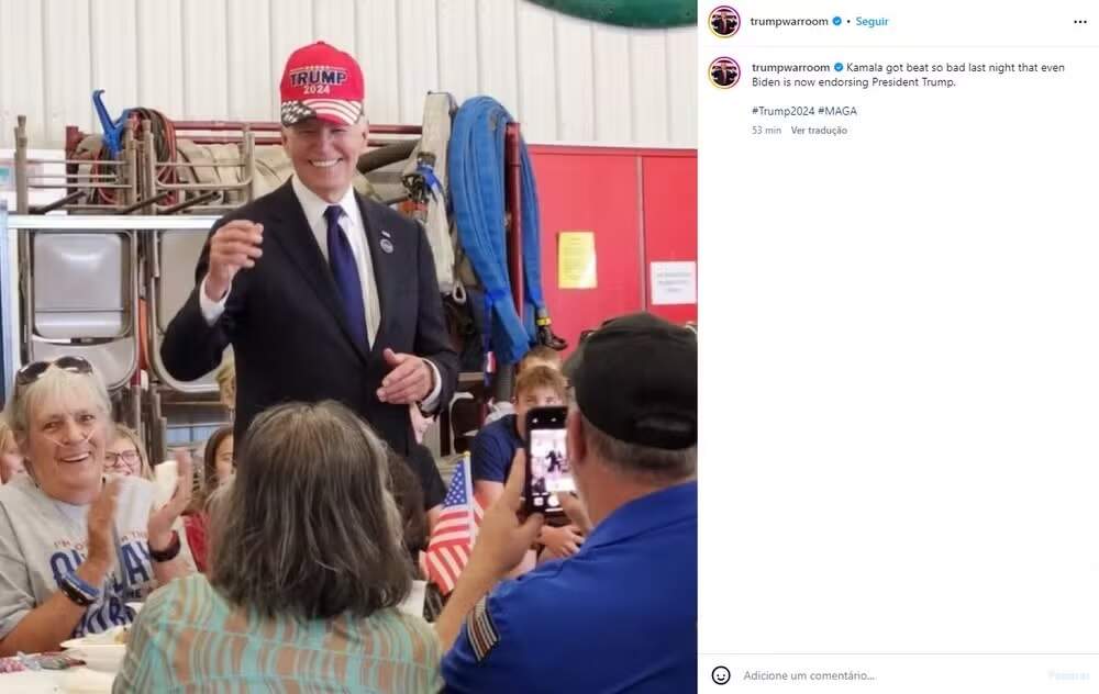 O comitê de campanha de Trump compartilhou a foto e agradeceu o “apoio” de Joe Biden.