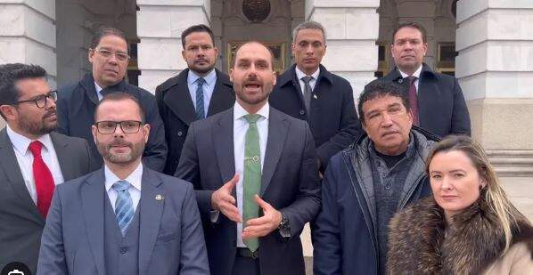 “A gente vai ter algumas reuniões com autoridades americanas aqui e expor um pouquinho do que está acontecendo no Brasil. Conseguimos dezenas de assinaturas de senadores e deputados de uma carta que fala da liberdade de expressão, determinadas situações que estão acontecendo no Brasil que não combinam com Estado democrático de direito”, afirmou o filho do ex-presidente Jair Bolsonaro em um vídeo gravado para as redes sociais.