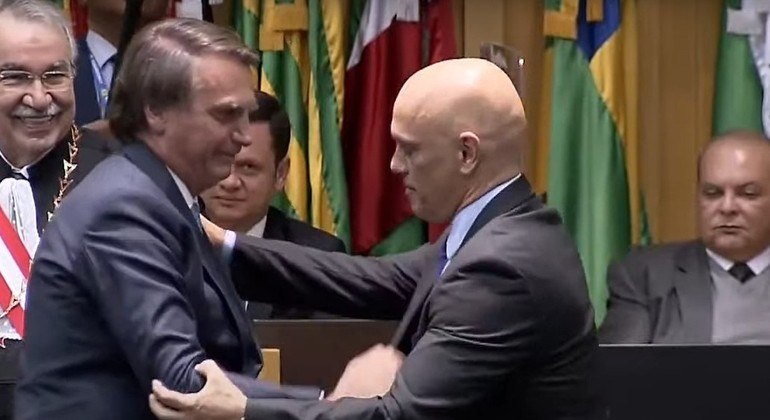 O cumprimento se deu no momento em que Bolsonaro foi chamado pelo presidente do TST, Emmanoel Pereira, para condecorar os ministros que tomavam posse. Ele se aproximou de Moraes, que estava sentado na primeira fila de convidados, fez sinal para que o ministro se levantasse e o cumprimentou. Mas depois, quando Moraes foi anunciado pela cerimonialista como uma das autoridades presentes e foi aplaudido pelo público, Bolsonaro não acompanhou.