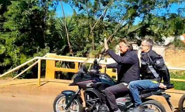 Antes de ir para o evento, o presidente encontrou com apoiadores e fez uma motociata até o local do discurso. Bolsonaro não usou capacete e levou o prefeito de Santa Rosa, Anderson Mantei, garupa.