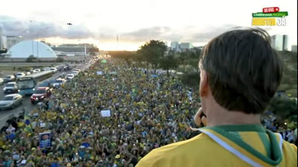 Em ato na capital federal nesta quarta-feira (7), o ex-presidente Jair Bolsonaro, descumprindo recomendação médica, subiu no carro de som e voltou a defender a anistia dos acusados de envolvimento no 8 de Janeiro. Bolsonaro afirmou que se o projeto que livra da punição os condenados pelos atos extremistas for aprovado no Congresso não poderá haver qualquer contestação dos demais Poderes.