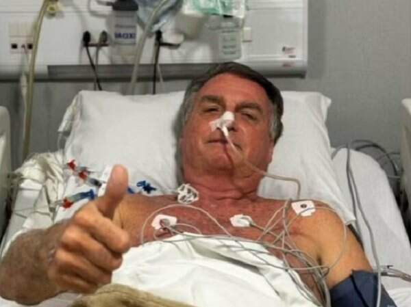 Bolsonaro publicou nas redes sociais uma foto em que aparece internado no Hospital Rio Grande. Segundo ele, os médicos diagnosticaram uma complicação no intestino delgado como causa do mal-estar.