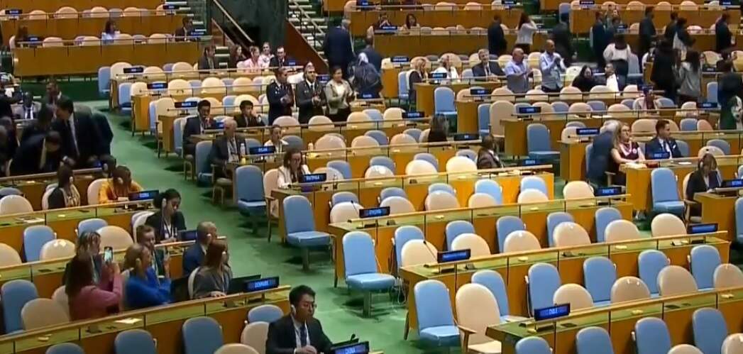 A fala do premiê de Israel, atualmente em guera na Faixa de Gaza e no Líbano, era uma das mais esperadas da Assembleia Geral, em que líderes dos 193 países da ONU fazem discursos. Quando ele foi chamado na sessão, dezenas de membros de delegações abandonaram o plenário da ONU, e houve aplausos e vaias. O presidente da sessão teve de pedir silêncio.