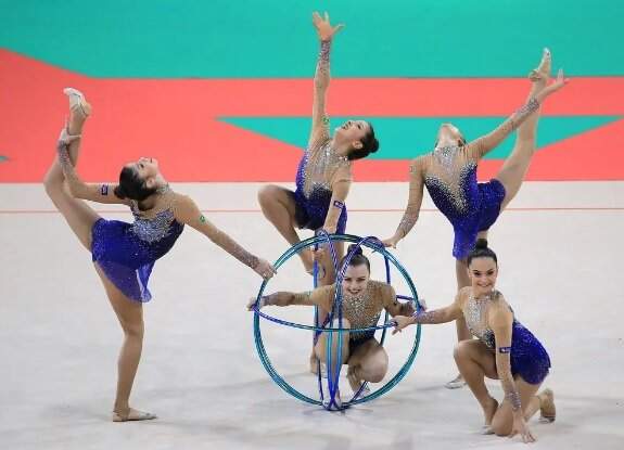 Na sexta, o Brasil praticamente cravou a série de cinco arcos e tirou 33,550 pontos ao som de “Fantasy on Ice”, figurando na terceira posição ao fim da primeira rotação. No entanto, na série mista (três fitas e duas bolas), as brasileiras cometeram algumas imprecisões, ficando com 27,150 pontos com a trilha sonora de “Smile”, de Charles Chaplin. Somando 60,700 pontos, o Brasil ficou na quinta posição do geral, atrás da campeã Bulgária (66,600), de Israel (64,650), da Espanha (63,200) e da Itália (62,050).
