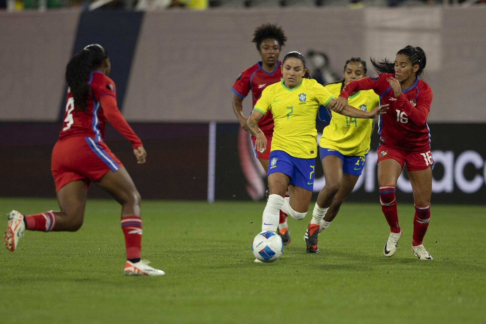Já classificada para as quartas de final da Copa Ouro feminina, a Seleção Brasileira goleou o Panamá por 5 a 0 na madrugada desta quarta-feira (28) e encerrou a primeira fase na liderança do grupo B.
