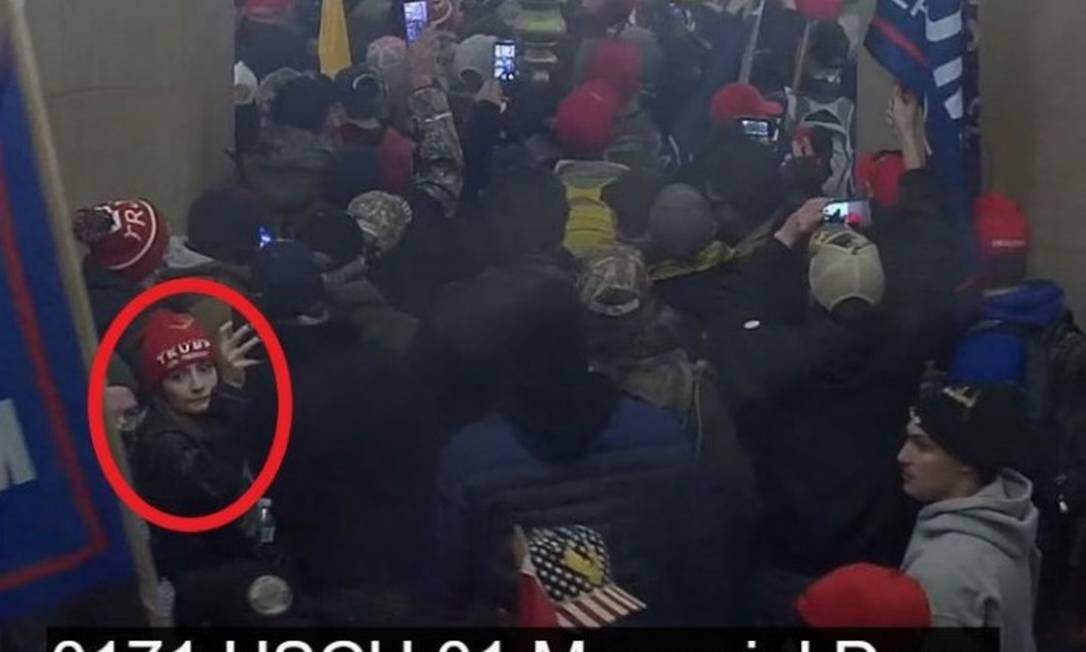 Imagens anexadas ao processo mostram Letícia dentro do prédio em meio à multidão, usando uma jaqueta camuflada e um gorro vermelho com o nome do então presidente Trump. Em um dos vídeos, ela está na cripta do Capitólio, local onde os invasores pararam e gritaram palavras de ordem como “nossa casa” e “pare o roubo”.