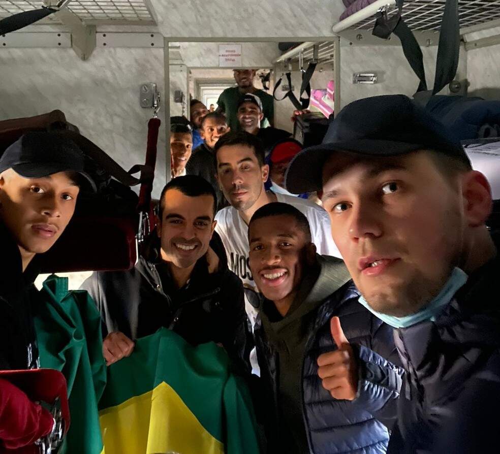 Os atletas estavam abrigados num bunker em um hotel de Kiev e embarcaram de trem rumo à cidade de Chernivtsi, no Oeste da Ucrânia. Lá pegaram outro trem para a Romênia. A saída de Kiev de trem foi uma solução proposta pelo Ministério das Relações Exteriores do Brasil, o Itamaraty. A Federação Ucraniana de Futebol fez uma escolta para assegurar a segurança do grupo até a estação de trem.