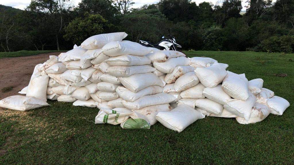 Os brigadianos encontraram três caminhões carregados com grãos de soja e um trator que era utilizado no transbordo da carga. Foram apreendidas cerca de 20 toneladas de farola de soja.