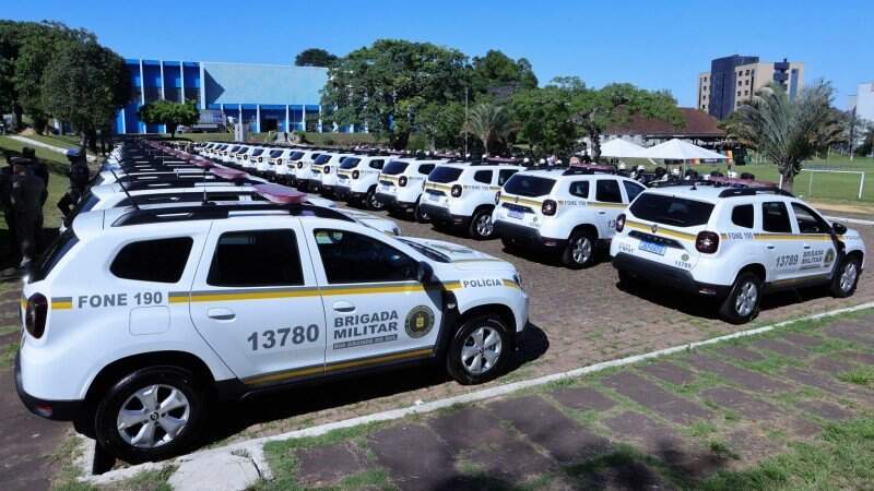 A Brigada Militar recebeu, na manhã desta sexta-feira (18), na Academia de Polícia Militar (APM), em Porto Alegre, 274 novos veículos, entregues pelo governo estadual. São 32 viaturas semiblindadas do modelo Renault Duster e 242 motocicletas Yamaha Lander para reforçar o policiamento ostensivo em 53 municípios gaúchos.