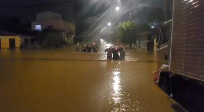 Em uma das ocorrências, por volta das 2h desta sexta-feira (16), uma equipe da BM realizou o salvamento de pelo menos dez famílias na rua Emília Silva, no bairro São José, em Sapucaia do Sul.