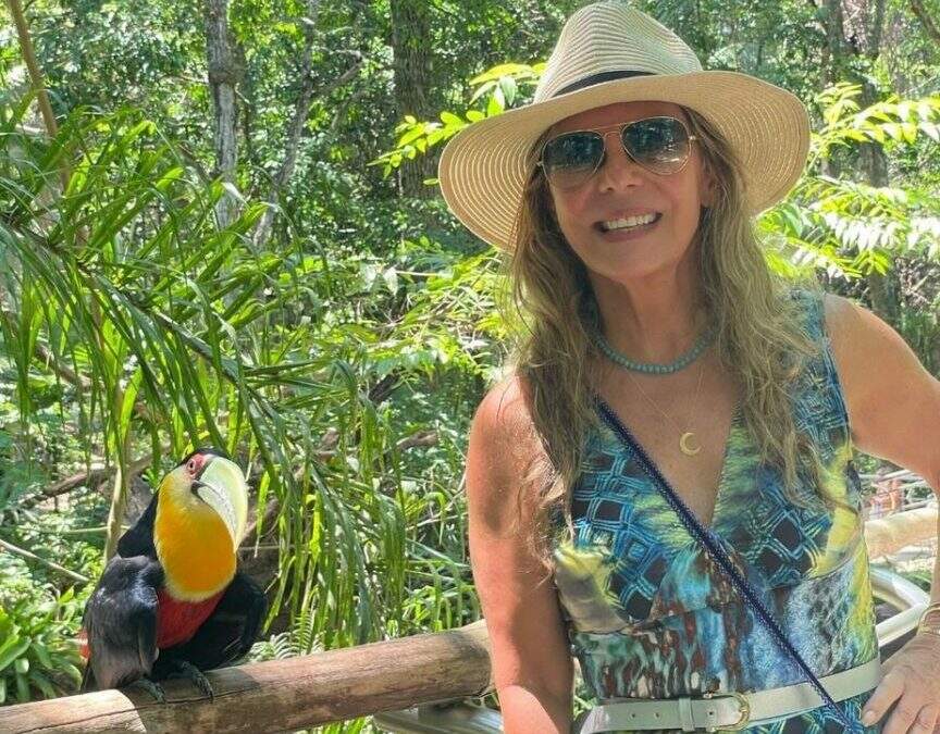 Bruna Lombardi usou sua conta nas redes sociais para compartilhar um clique fofo, nesta sexta-feira (4). Na imagem, a atriz e roteirista aparece fazendo pose com um tucano e faz um pedido para os seus seguidores não comprarem animais silvestres.