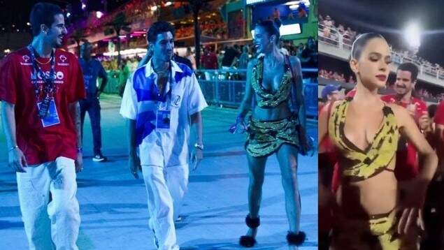 Um outro detalhe na passagem de Bruna Marquezine chamou atenção. A atriz aparece sambando e ao fundo se vê Luma de Oliveira, empolgadíssima, curtindo os desfiles das frisas.